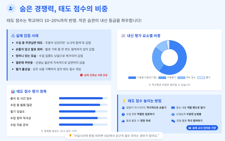 내신에서 태도 점수 비중은 학교마다 조금씩 다르지만,